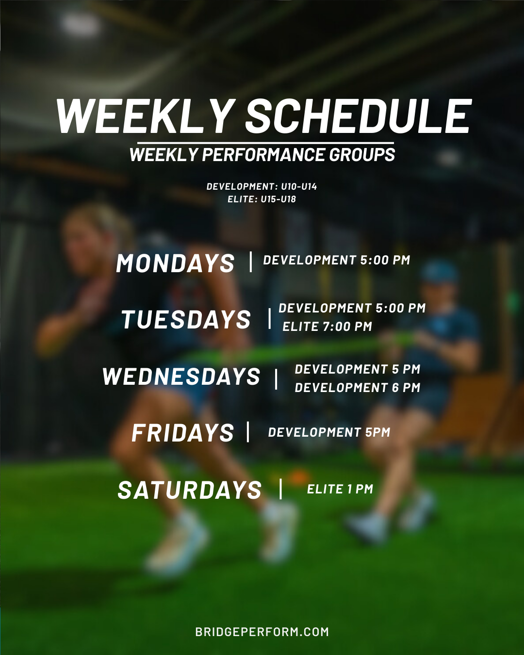 Bridge Performance’s Youth Speed & Strength groups build a strong athletic foundation through proper movement, strength, and speed training. Small group sizes ensure a personal, individualized approach. This fall, Coach Bri and Coach Phil will lead the groups with expert coaching and guidance.